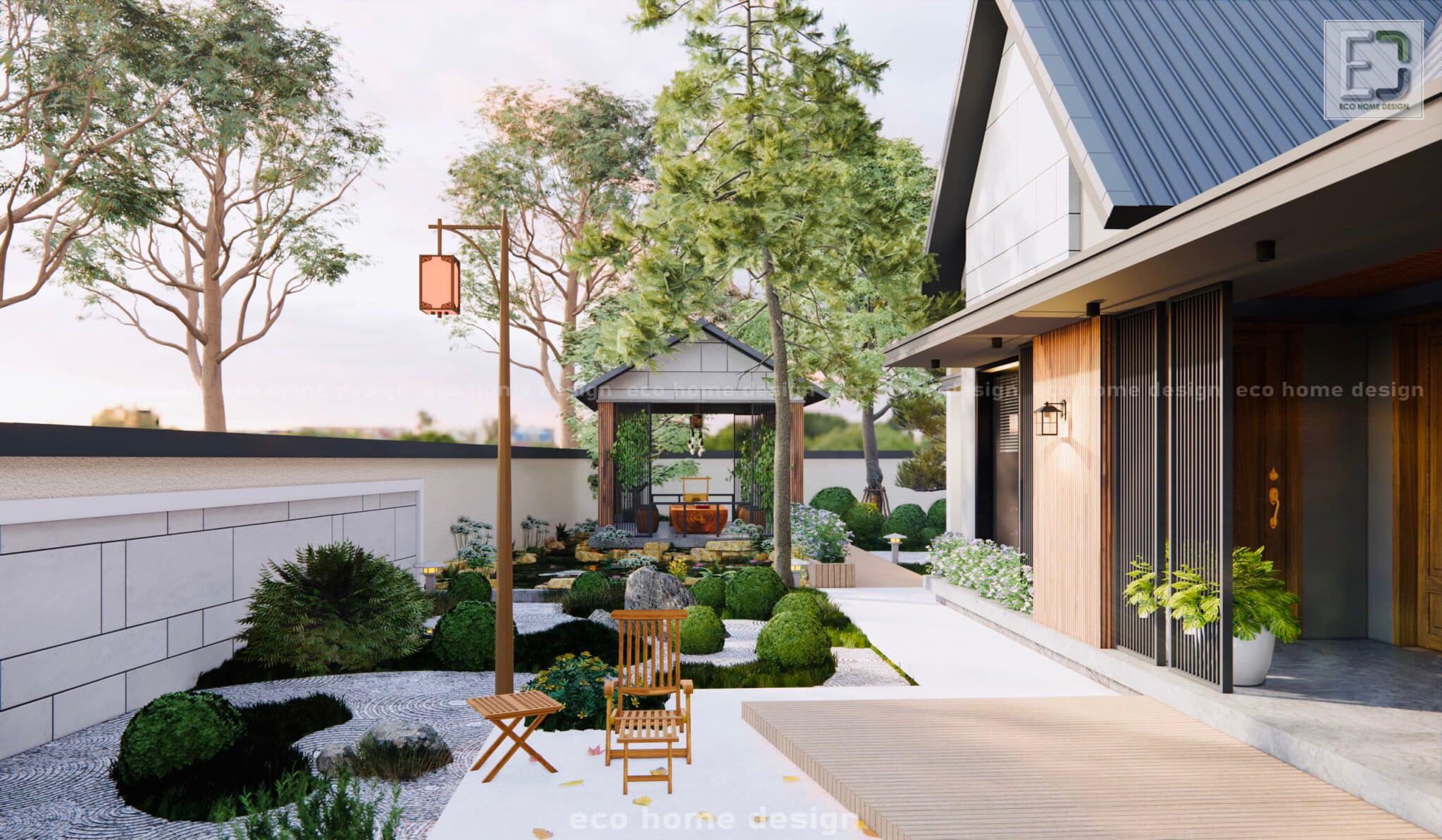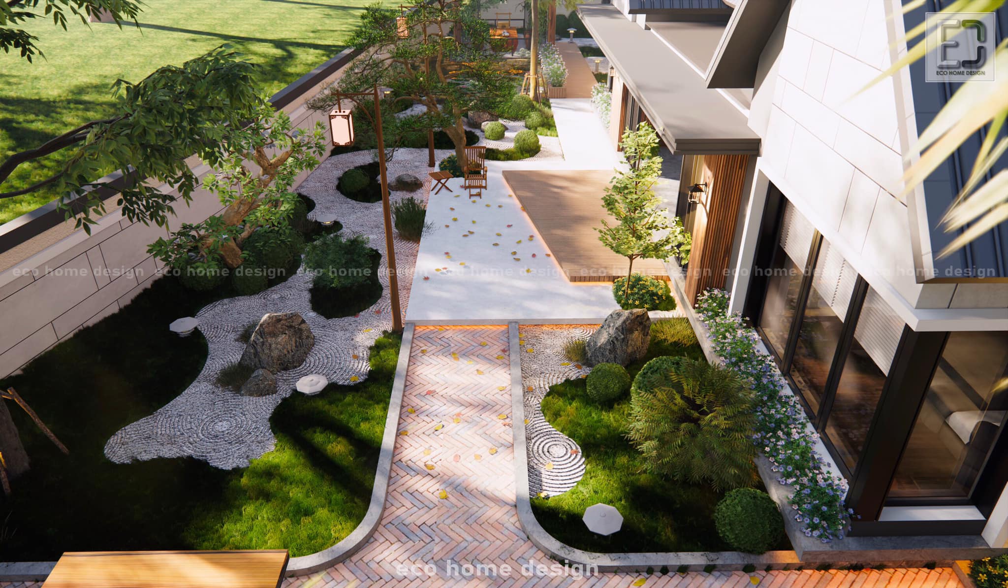 Biệt thự nghỉ dưỡng phong cách Nhật Bản thường có những khu vực nghỉ ngơi bên ngoài với kiểu dáng kiến trúc truyền thống. Mỗi góc nhỏ đều được chăm chút tỉ mỉ, từ bàn thư giãn nhỏ nhắn dưới tán cây, đến những con đường sỏi nhẹ nhàng dẫn dắt bạn vào vườn hoa xum xuê. Tận hưởng nhịp sống chậm rãi và thư thái tại đây, bạn sẽ cảm nhận được dòng chảy của thời gian mà không hề chút áp lực.