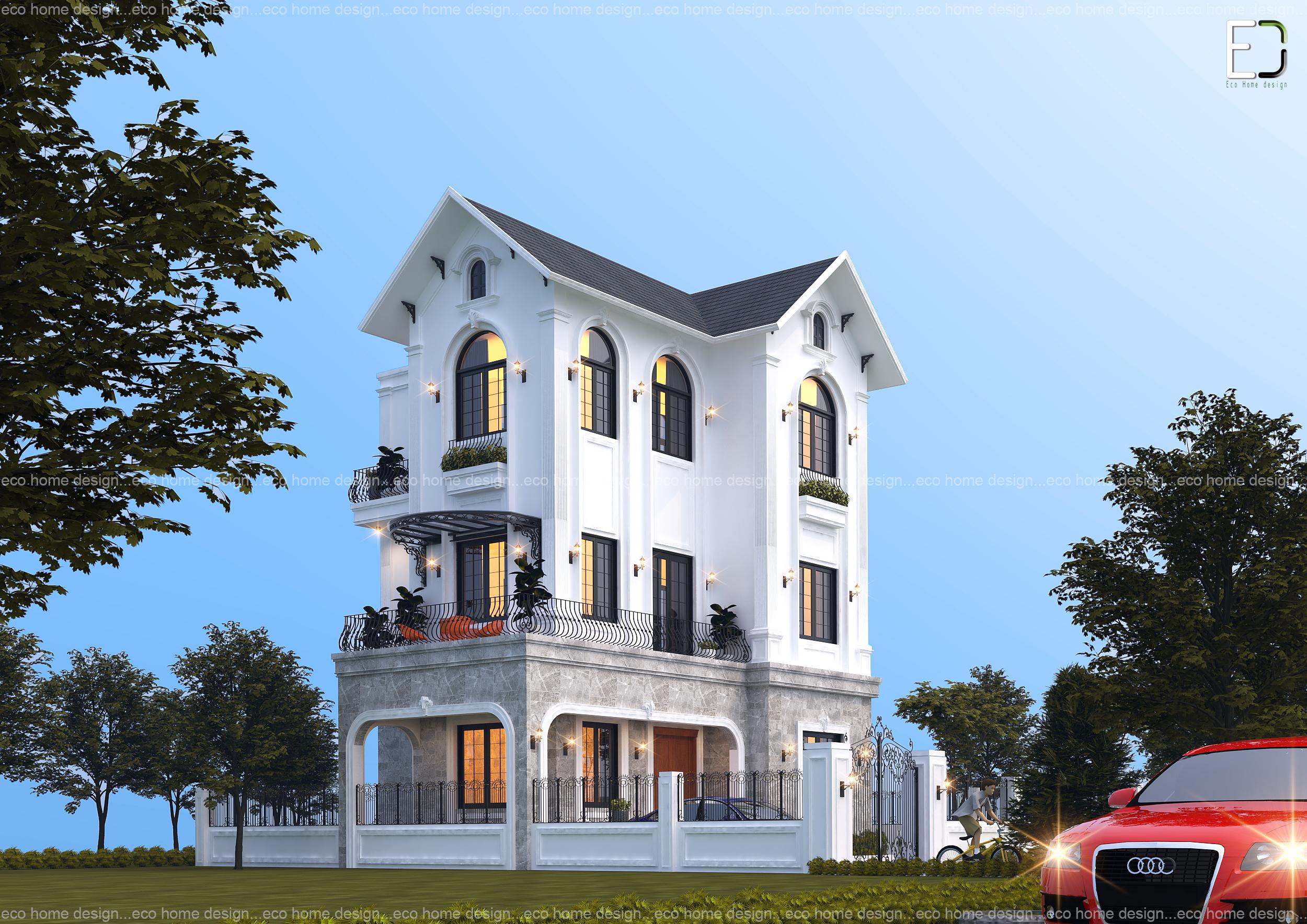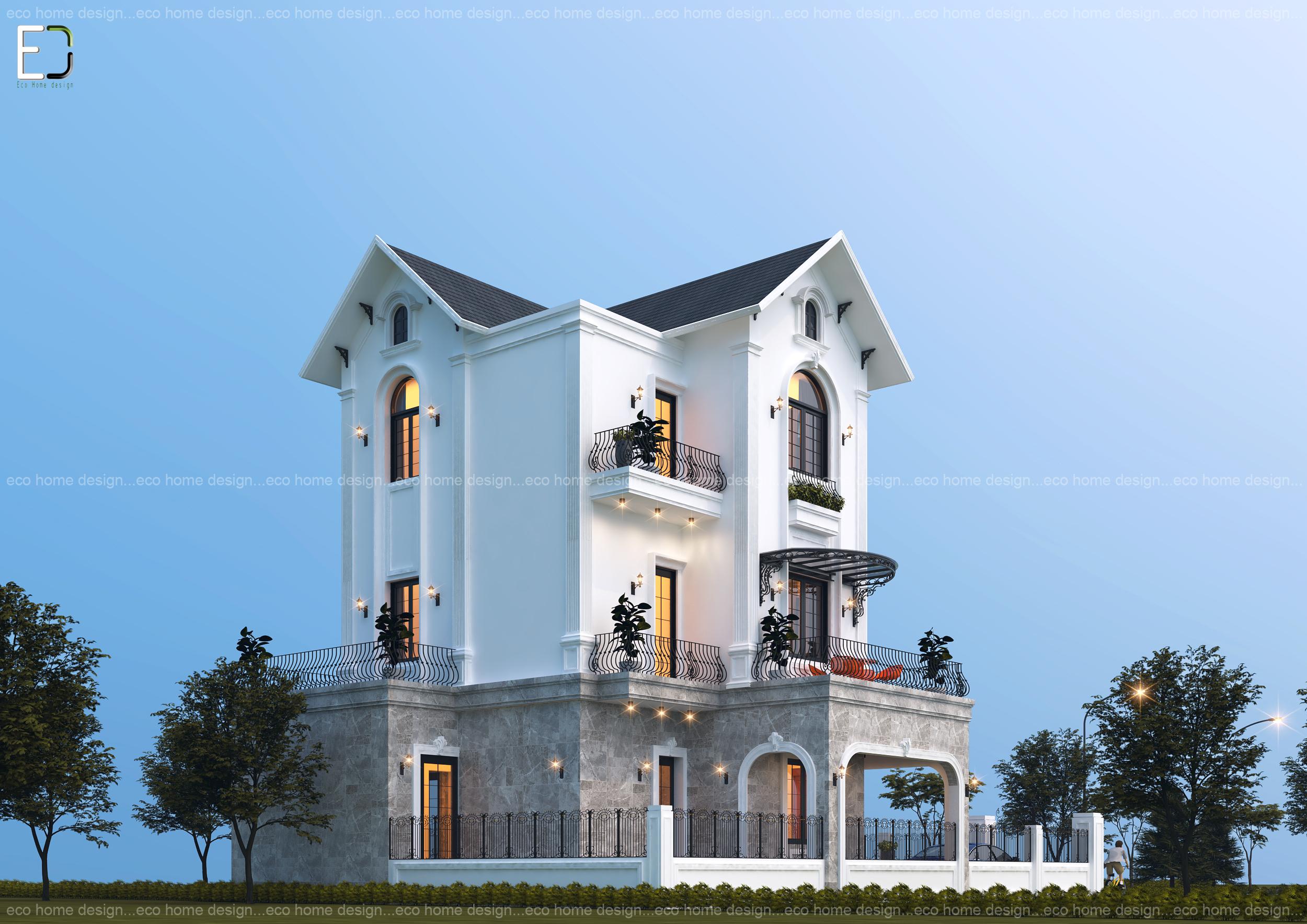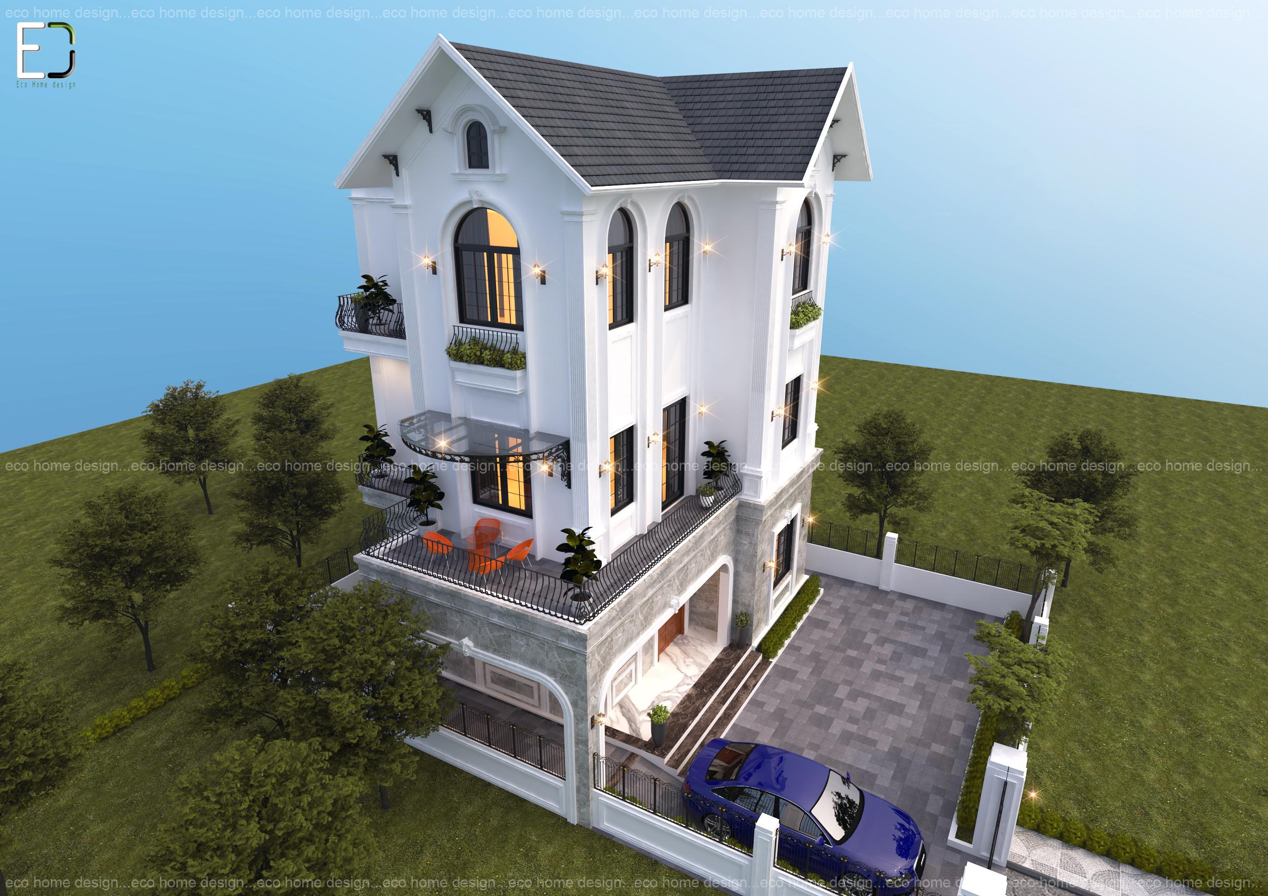 Biệt thự tân cổ điển được Eco Home Design thiết kế cho gia đình chị Phẳng – Phụng Công, Văn Giang, Hưng Yến.