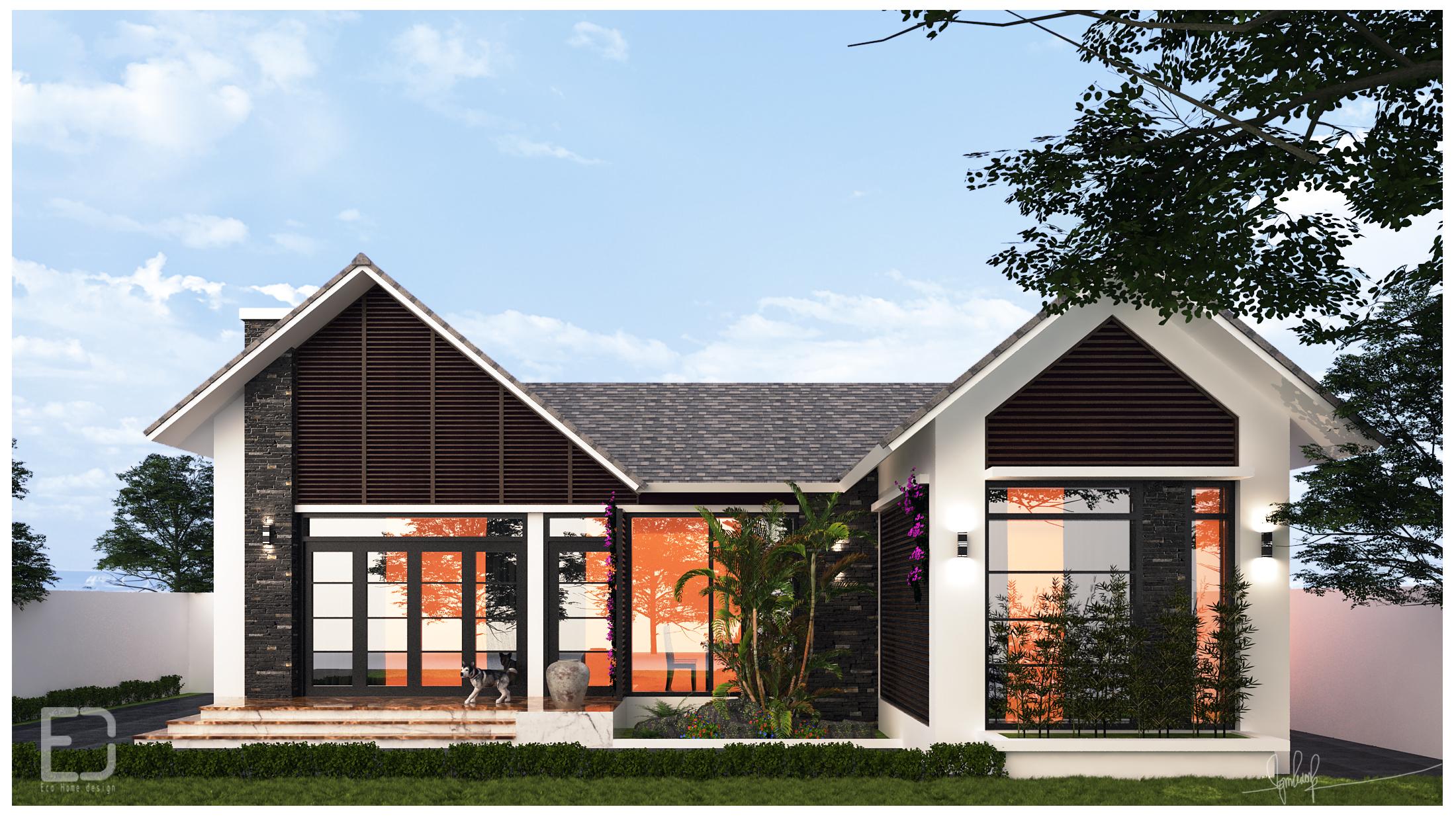 Nhà cấp 4 đẹp tại Văn Giang – Hưng Yên được thiết kế như tại khu nghỉ dưỡng dưới sự sáng tạo của Eco Home Design. Đẹp hiện đại mà ấm cúng thanh bình.