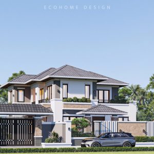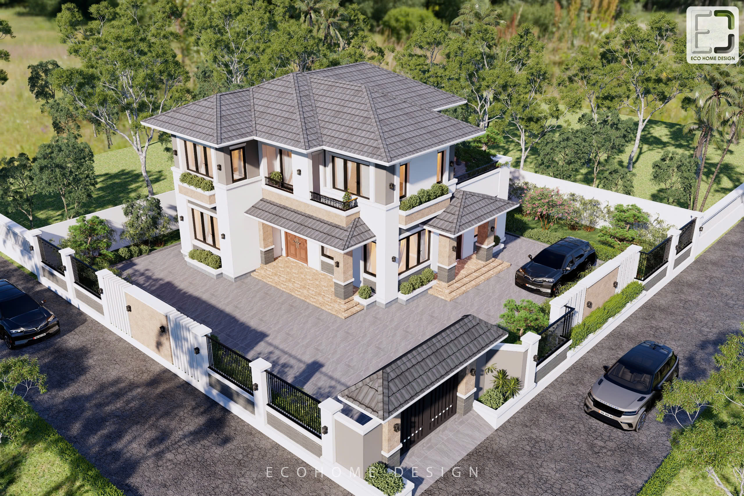 Dự án nhà ở của chú Thượng – Khoái Châu, Hưng Yên được Eco Home Design thực hiện ở giai đoạn thiết kế kiến trúc, với định hướng tạo nên một không gian sống bề thế, chỉn chu và bền vững theo thời gian. Công trình mang phong cách hiện đại mái Nhật, hình khối rõ ràng, tỷ lệ cân đối, chú trọng sự hài hòa giữa kiến trúc – cảnh quan – công năng sử dụng. Mỗi đường nét, cao độ, vật liệu đều được nghiên cứu kỹ để phù hợp với điều kiện thực tế khu đất, nhu cầu sinh hoạt của gia đình và thẩm mỹ lâu dài. Đây là dự án thể hiện rõ năng lực của Eco Home Design trong việc tư vấn giải pháp kiến trúc bài bản, tối ưu không gian và cá nhân hóa thiết kế theo từng gia chủ.