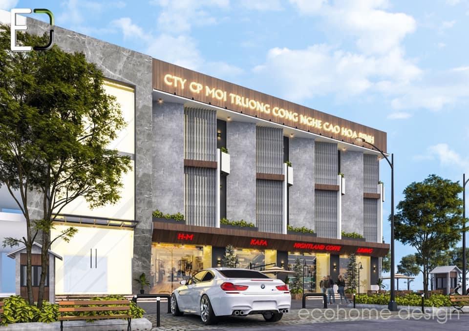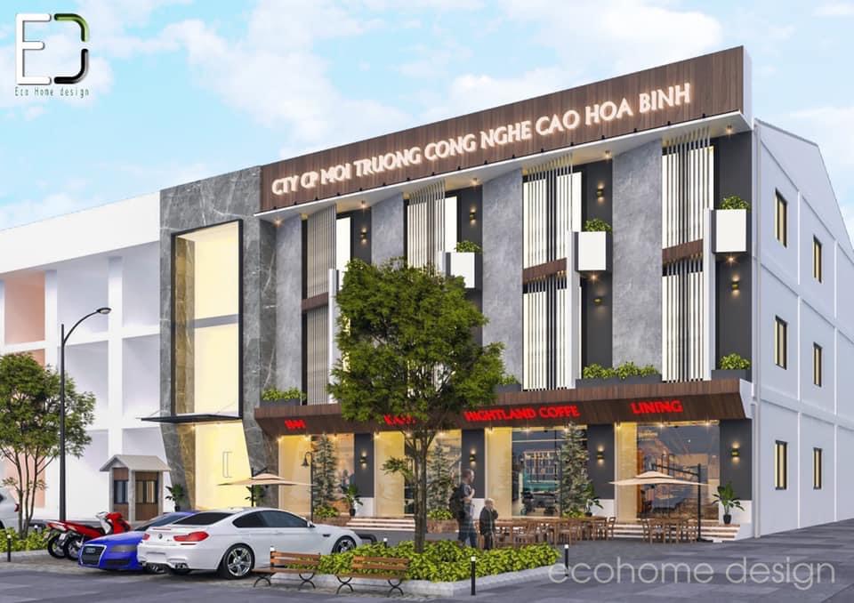 Trụ sở làm việc công ty CP Môi trường Công nghệ cao Hòa Bình vừa hiện đại, lại thân thiện môi trường.